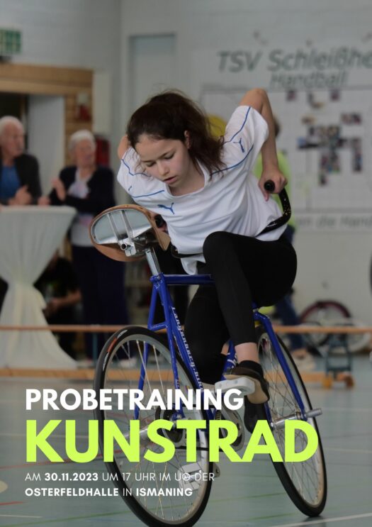 Du fährst gerne Fahrrad und möchtest lernen, wie man zum Beispiel auf dem Sattel und dem Lenker stehen kann? Dann lass dir diese Chance nicht entgehen! Wir laden euch herzlich ein, an unserem kostenlosen Probetraining teilzunehmen und die spannende Welt des Kunstradsports zu entdecken.