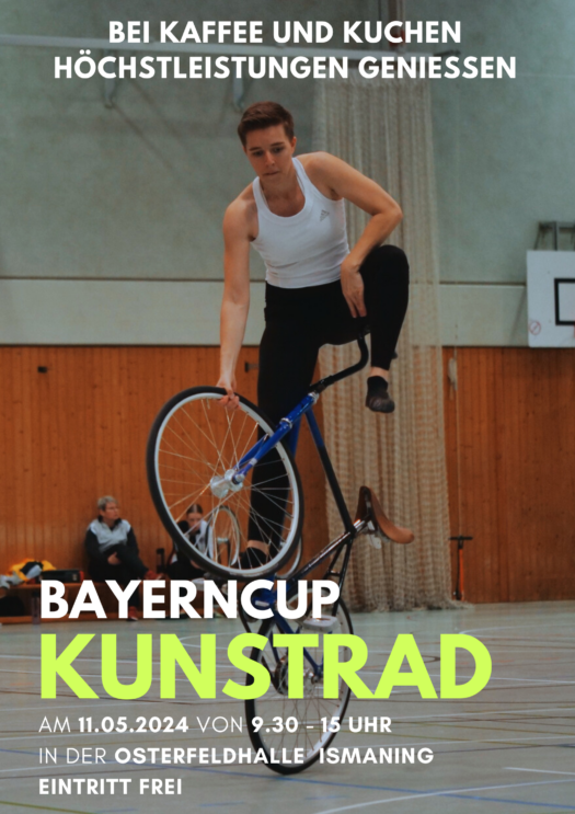 Am kommenden Samstag, dem 11. Mai 2024, findet in Ismaning der jährliche Bayern-Cup im Kunstradfahren statt. Die Kunstradfahrer*innen der Soli Ismaning freuen sich über die Unterstützung durch ein großes Publikum.