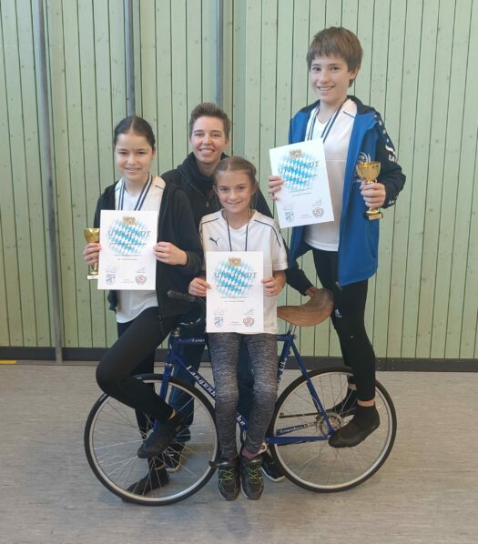 Die drei Kunstradfahrer/innen der Soli Ismaning konnten am 11. November auf dem Nachwuchswettbewerb 2023 mit zwei ersten Plätzen und einem erfolgreich bestrittenen ersten Wettkampf eine hervorragende Bilanz vorweisen.