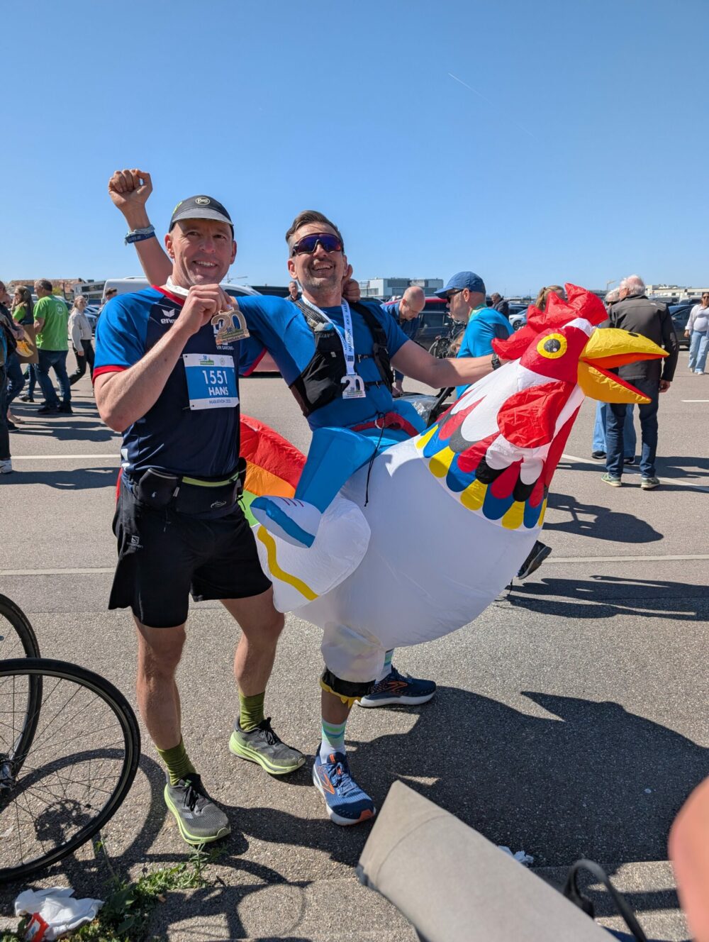 Das verrückte Hühnchen läuft den Freiburg Marathon am 06.04.2025